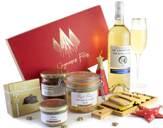 Panier gourmand, colis garni de foie gras